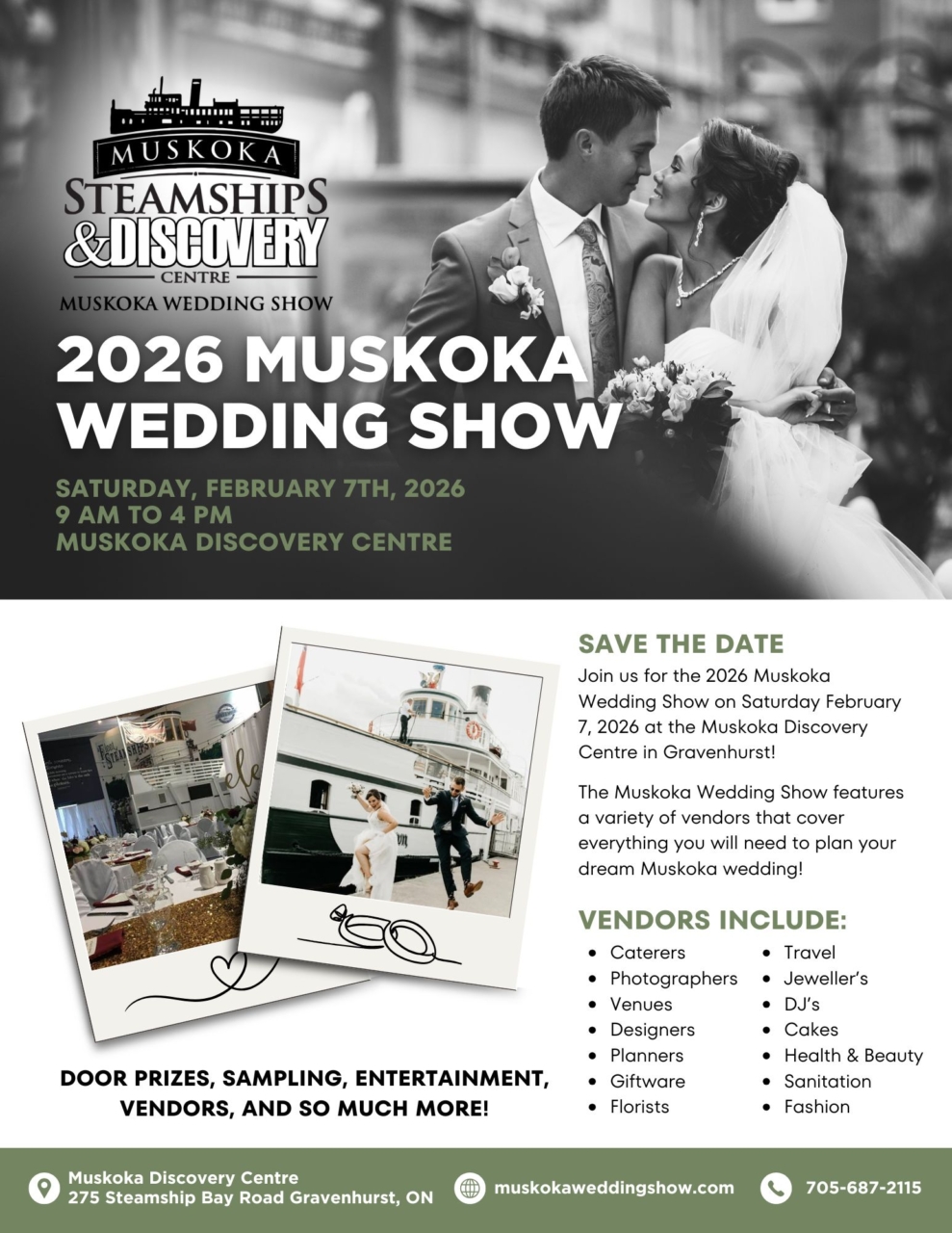 Join us for the 2026 Muskoka Wedding Show on Saturday February 7, 2026 at the Muskoka Discovery Centre in Gravenhurst!