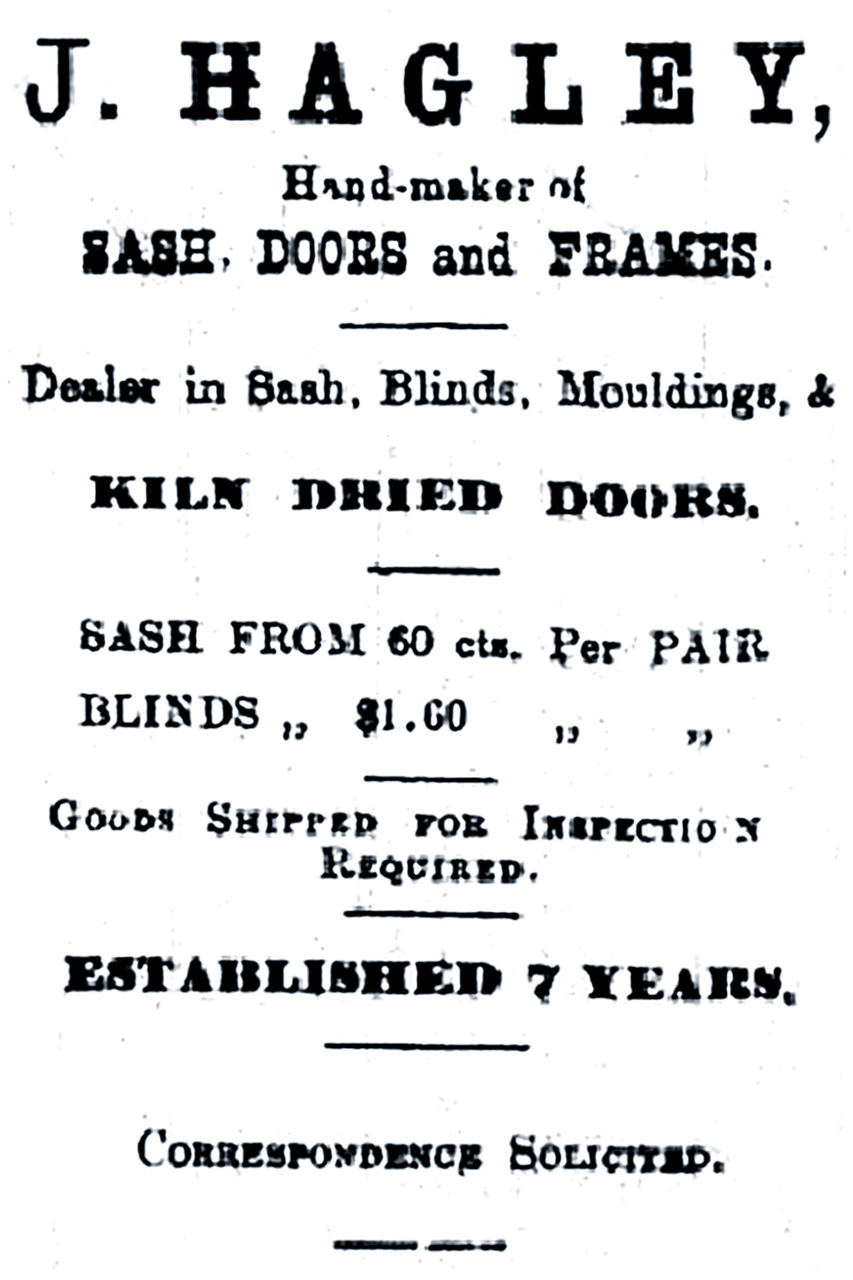 James Hagley was a Yorkshireman who had come to Canada in 1867. Married with six children, the Hagleys had been living in Hamilton for several years, but left about 1877. It was while in Hamilton that James had been converted and baptized as a Christadelphian. By 1879, the Hagleys had moved to Gravenhurst, where James continued to work as a carpenter or joiner. He had a business making doors, sashes, windows and other items, and he was probably doing well because of the many houses being built in Gravenhurst at this time. Sadly, Hagley’s wife, Jane, died in October 1887, just a couple of months before Rose Greavett lost her husband.